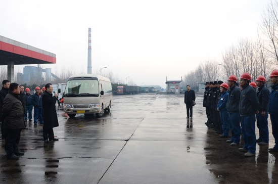 8點(diǎn)50分,司相芳總經(jīng)理帶領(lǐng)公司部分領(lǐng)導(dǎo)來到班車停放處,下夜班的職工列隊(duì)鼓掌歡迎。司總發(fā)表了熱情洋溢的新年講話。司總說,在新春佳節(jié)之際,全體員工為了確保節(jié)日期間的安全生產(chǎn),仍然奮斗在生產(chǎn)一線,感謝大家的辛勤工作,祝大家在新的一年里工作順利、合家幸福,萬事如意!